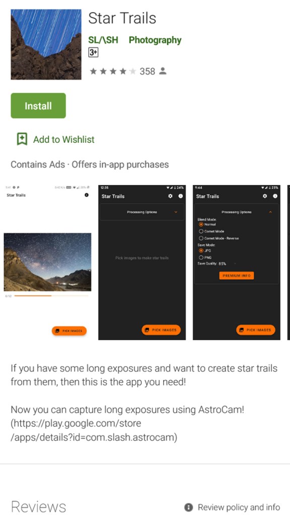 To create a Star trail photo from your Android phone, you need to first click a sequence of images of stars in the night sky. Yes, Astrophotography. Essentially you need to shoot a time-lapse of stars.